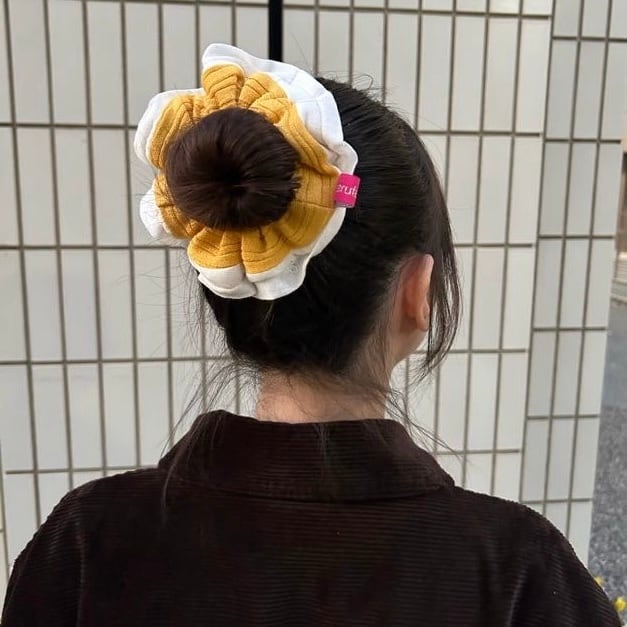 名前の通り、カスタードクリームのような可愛らしいデザインのシュシュです。
