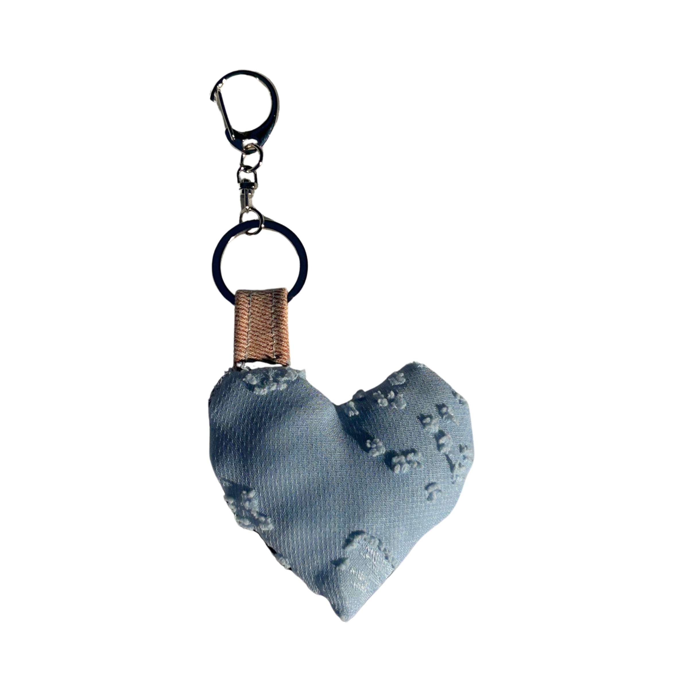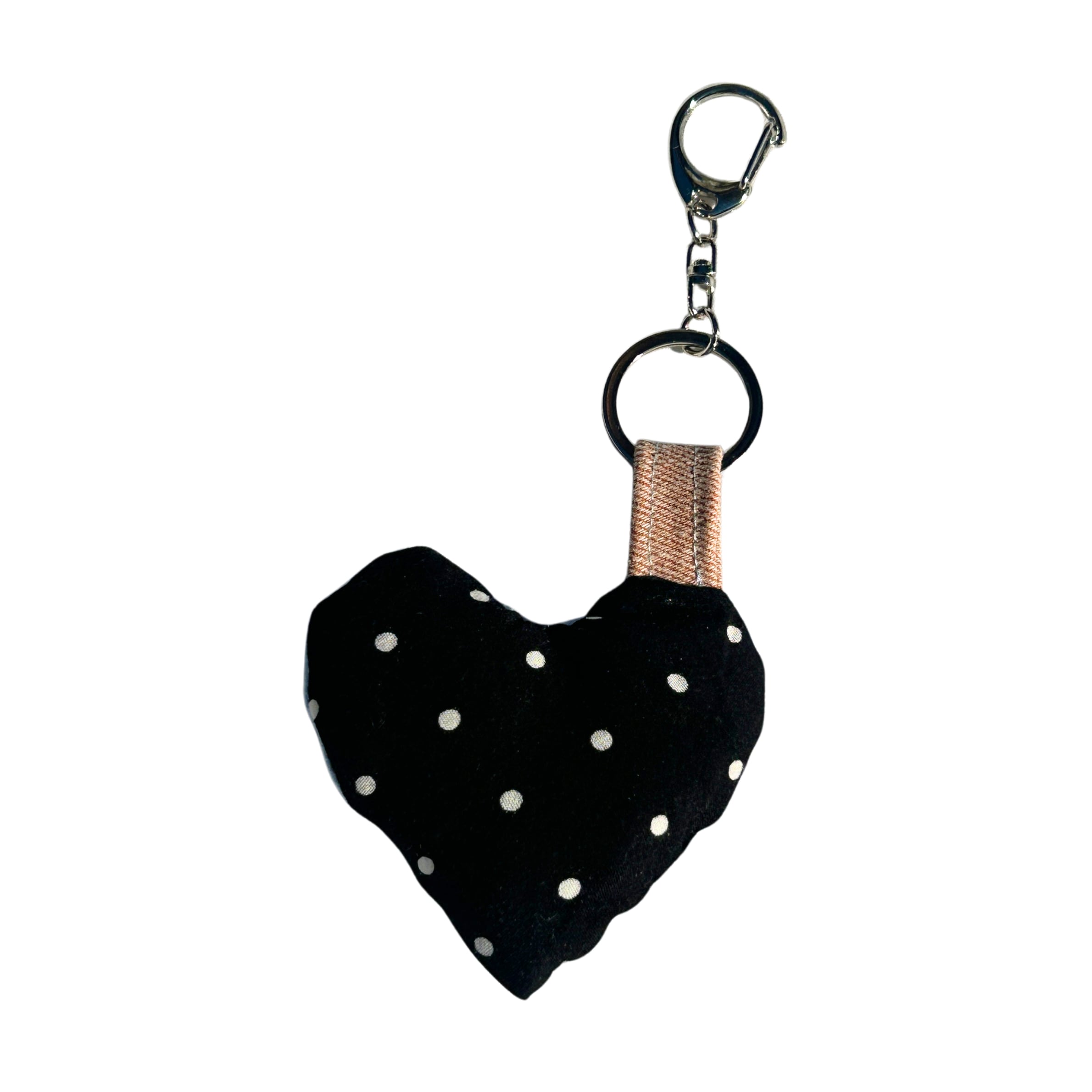 表地はドット柄、裏地はデニム生地のキーホルダーです。