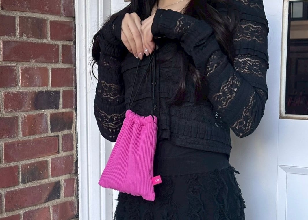 さくらんぼのような明るいピンクが魅力的な巾着です。シンプルなコーディネートにアクセントをもたらしてくれること間違いなしです。散らかりがちな小物の収納にぜひ!